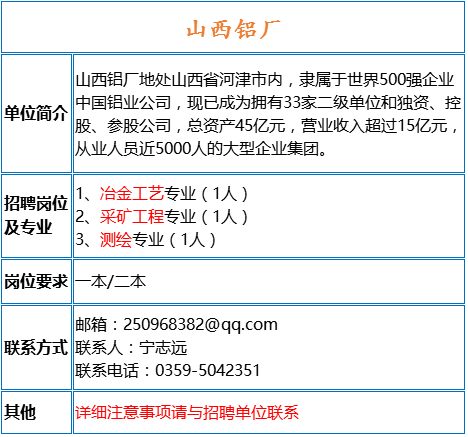 我們期待著您的加入,共同為鋁廠的明天添磚加瓦,注:本文所述招聘信息僅供參考,具體職位、要求和流程可能因?qū)嶋H情況而有所調(diào)整,求職者在實(shí)際申請過程中,請仔細(xì)閱讀并遵循我們的招聘流程和要求。