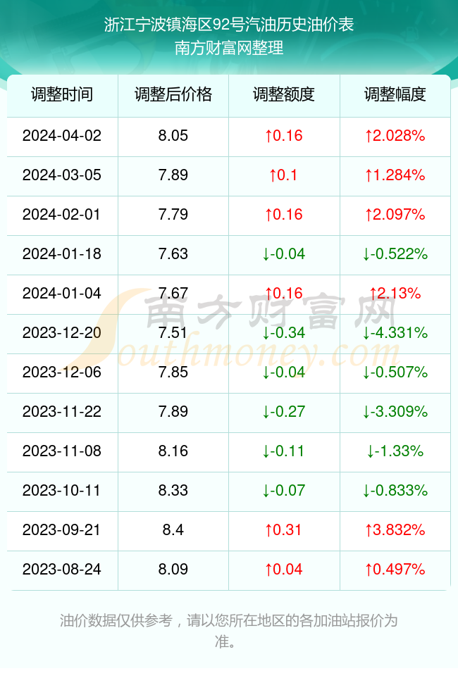本文旨在為廣大車主提供關(guān)于寧波地區(qū)92號汽油的最新價格動態(tài),深入分析油價波動的原因及影響因素,并預(yù)測未來可能的趨勢,以下是詳細(xì)內(nèi)容: