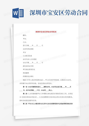 摘要:深圳勞動(dòng)合同最新版旨在保障勞動(dòng)者和雇主的權(quán)益,明確雙方的責(zé)任和義務(wù)。該合同詳細(xì)規(guī)定了工作內(nèi)容、工資待遇、工作時(shí)間、保險(xiǎn)福利等關(guān)鍵事項(xiàng),確保雙方在雇傭關(guān)系中的公平和合法。該版本的推出有助于減少勞動(dòng)糾紛,維護(hù)社會(huì)穩(wěn)定,促進(jìn)雇主和勞動(dòng)者之間的和諧關(guān)系。